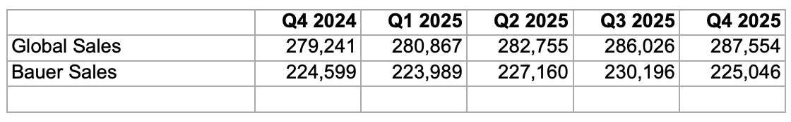 The dominance of the main players makes some of the concerns over ratings look fairly minor. When we compare the sales operations of Global and Bauer, looking at the hours from this quarter and the previous year, we can see that whilst there’s some variance it’s not going to change the fundamentals of their businesses. Indeed the breadth of stations means that if someone leaves one station, there’s a pretty good chance they’ll end up at another station from the same group.