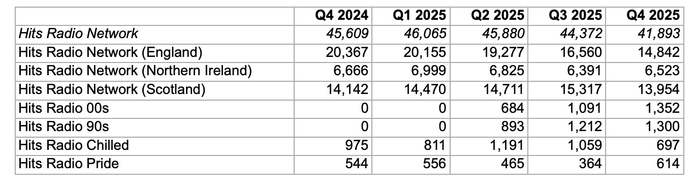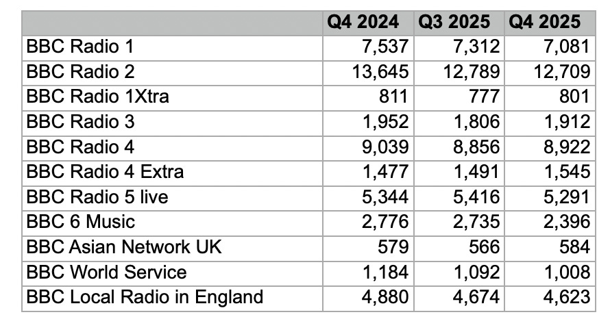 Every quarter, the UK radio ratings come out from trade body RAJAR and we’ve just had the data for the final quarter of 2025. There’s quite a lot of red ink with many stations and groups seeing declines.