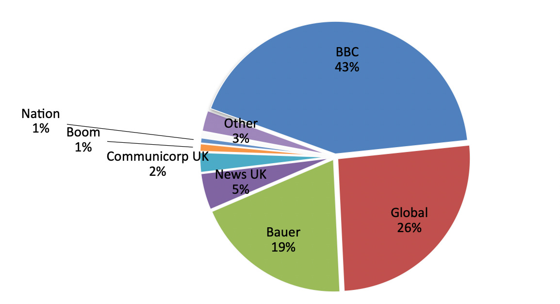 The UK market is pretty consolidated. Looking at total hours of listening - where we have around a billion - the three main players have the vast majority, with the rest fighting over the final 12%.